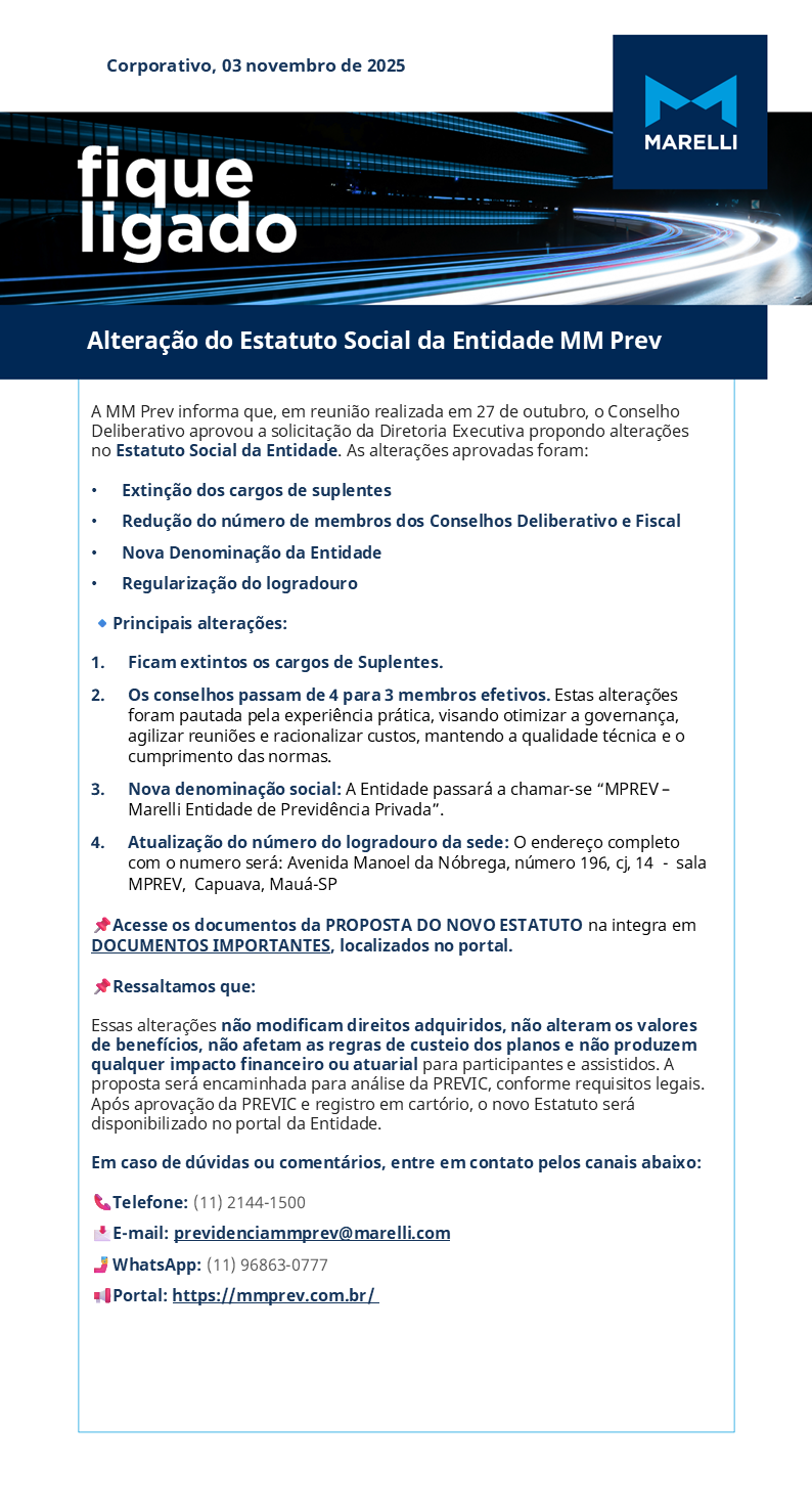 Nós somos a MM PREV – Magneti Marelli Entidade de Previdência Privada (“MM PREV”) a entidade fechada de previdência complementar criada em 22 de dezembro de 1989.
